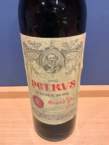 シャトー・ペトリュス1992年は、ボルドー右岸ポムロールを代表する超高級ワインのひとつで、「不作年の中で健闘した名品」として知られています。
