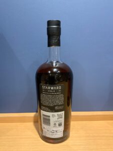 熟成には赤ワイン樽(Starward定番)をはじめ、タウニー、バーボン、アペラ、ラム樽といった複数のカスクが用いられた複雑なヴァッティング。