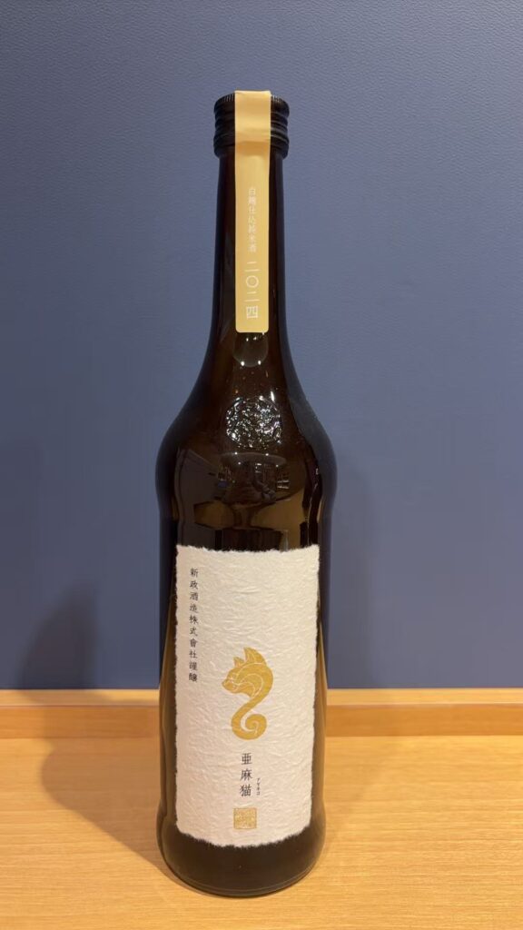 Detail「亜麻猫」は新政酒造の実験的シリーズ(PRIVATE LAB)の一本、白麹を使った独自製法で、日本酒らしくない強い酸味と果実感が特徴